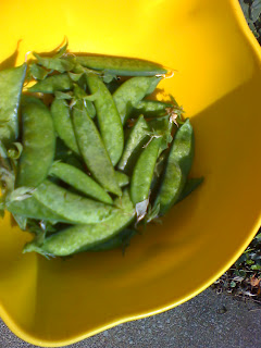They're still blooming - still bearing peas! Some of the pods are a little mottled probably from the cold but they're still sweet as ever and crispy! There's not a huge patch planted with them - 10 squares in a Square Foot Garden but enough for Fresh Garden Peas for dinner tonight!